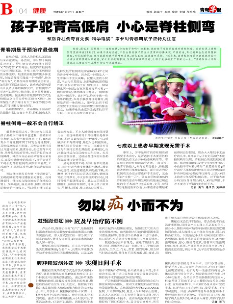 青島早報:孩子駝背高低肩 小心是脊柱側彎