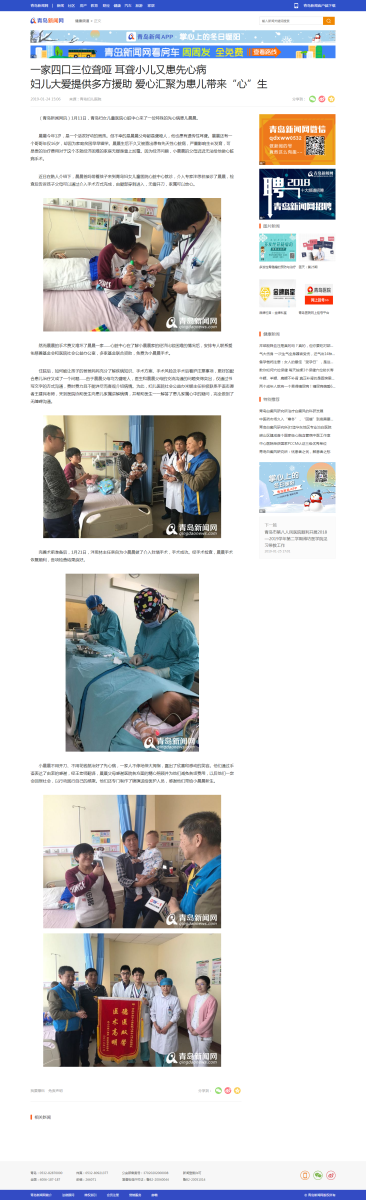 青島新聞網(wǎng):一家四口三位聾啞 耳聾小兒又患先心病