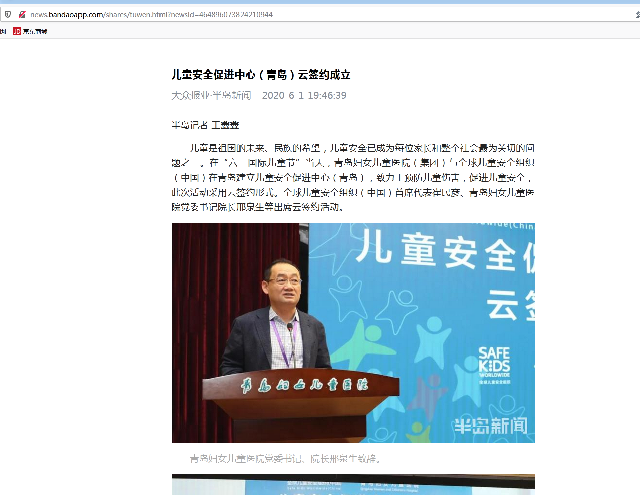 大眾日報(bào):兒童安全促進(jìn)中心(青島)云簽約成立