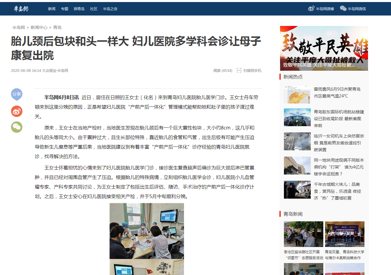 半島網(wǎng):胎兒頸后包塊和頭一樣大 婦兒醫(yī)院多學(xué)科會診讓母子康復(fù)出院