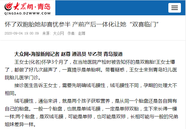 大眾網(wǎng)·青島:懷了雙胞胎她卻喜憂參半 產(chǎn)前產(chǎn)后一體化讓她“雙喜臨門”