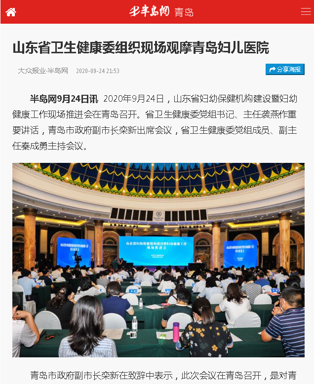 大眾報(bào)業(yè)·半島網(wǎng): 山東省衛(wèi)生健康委組織現(xiàn)場(chǎng)觀摩青島婦兒醫(yī)院