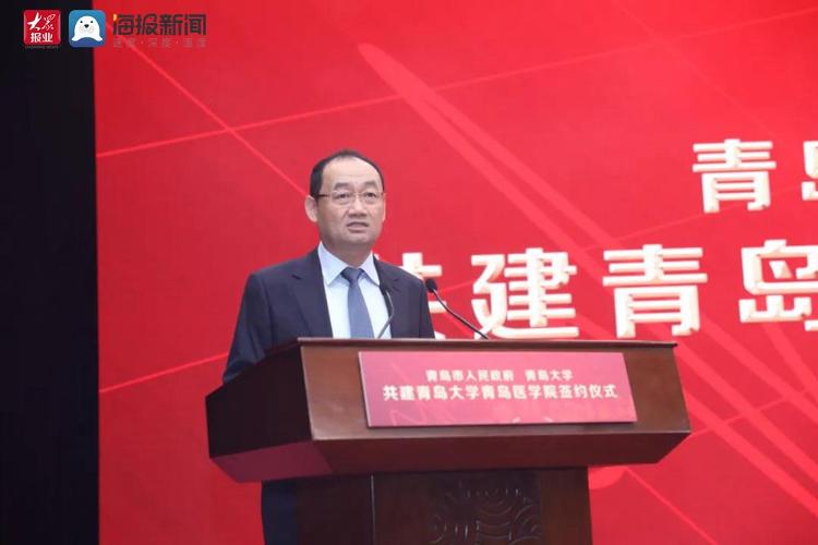 10月9日上午,青島大學(xué)青島醫(yī)學(xué)院簽約暨揭牌儀式、青島大學(xué)與共建直屬附屬醫(yī)院簽約暨揭牌儀式在市級機(jī)關(guān)會議中心舉行。省委常委、市委書記王清憲,市委常委、秘書長祝華,副市長欒新出席會議。王清憲為青島大學(xué)青島醫(yī)學(xué)院揭牌。